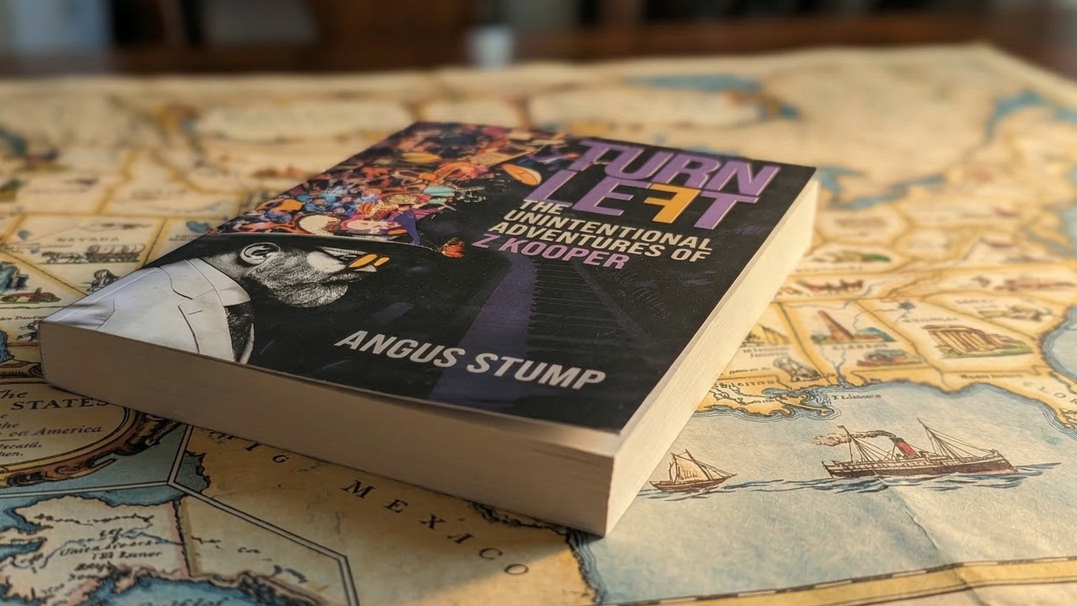 Turn Left: The Unintentional Adventures of Z Kooper by Angus Stump. Available at Amazon, or possibly on a table near you, left there on purpose by a guy in a hat.